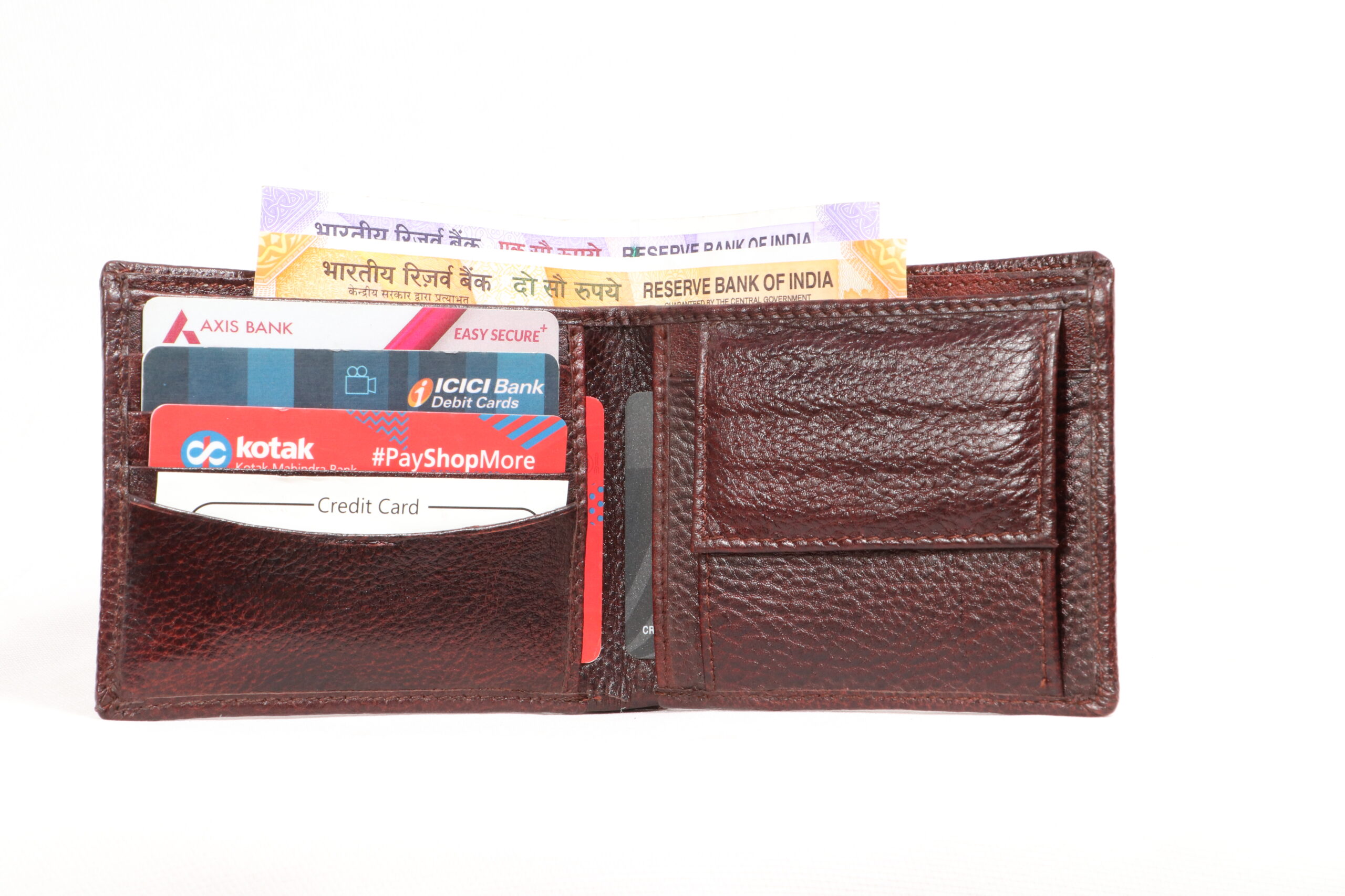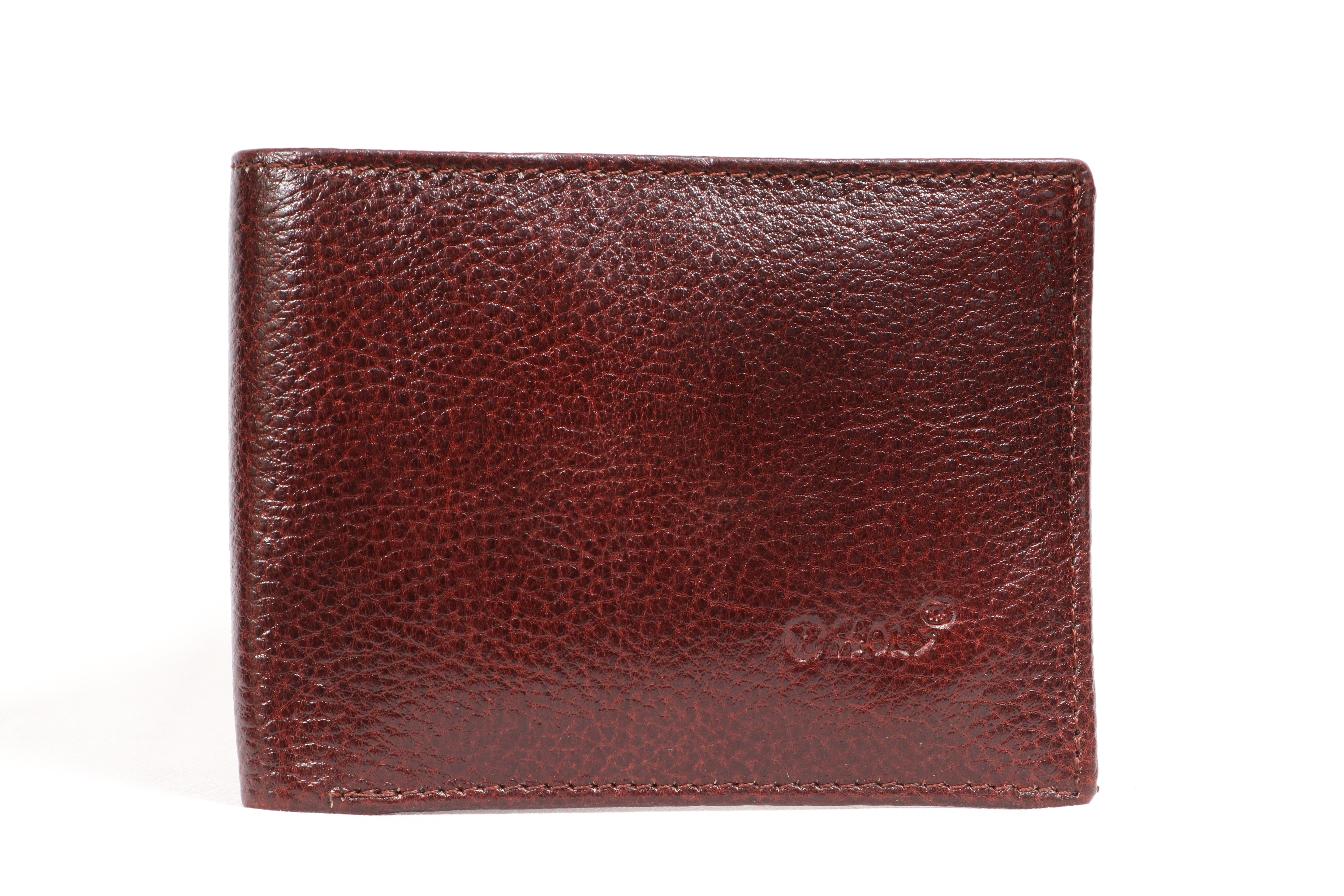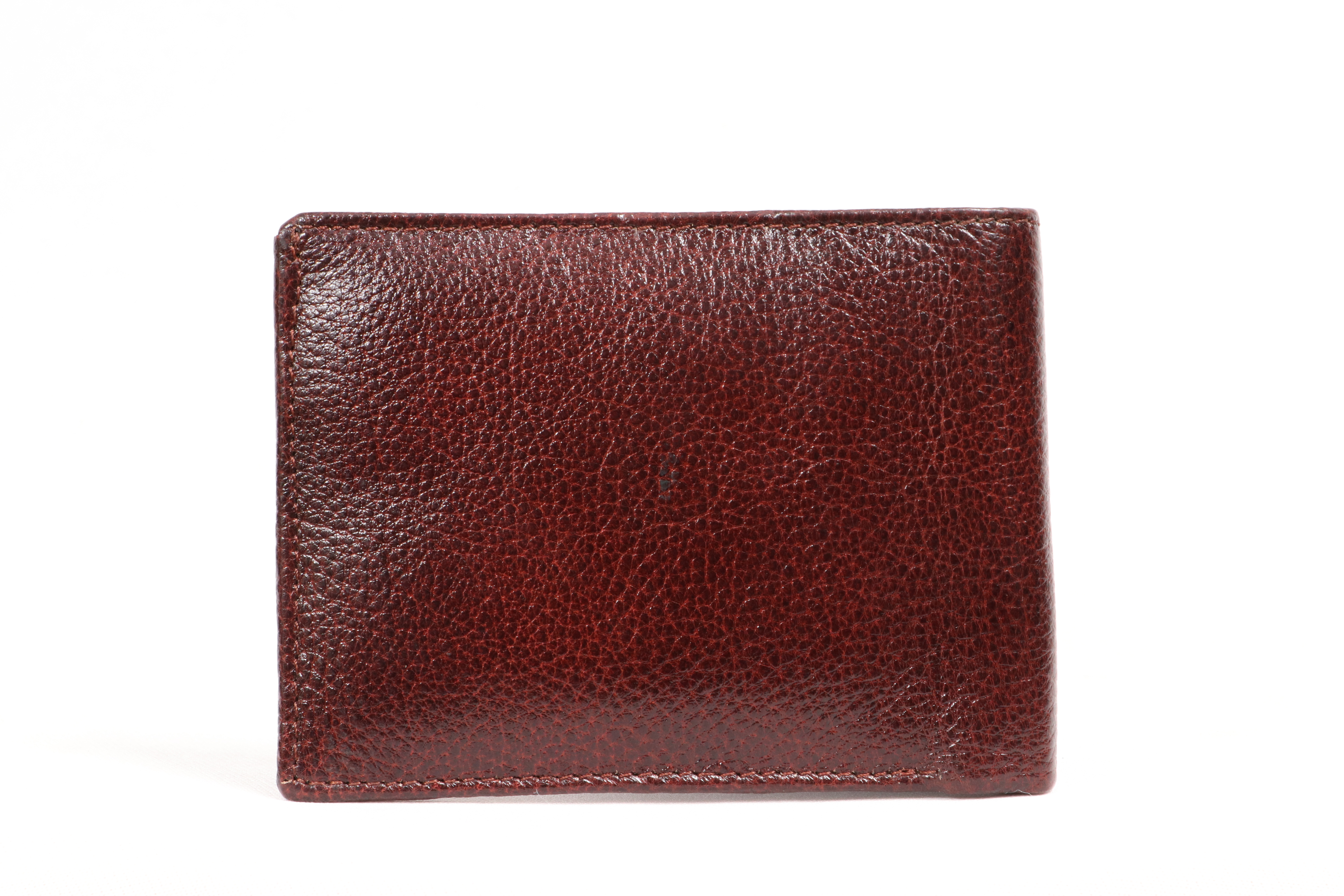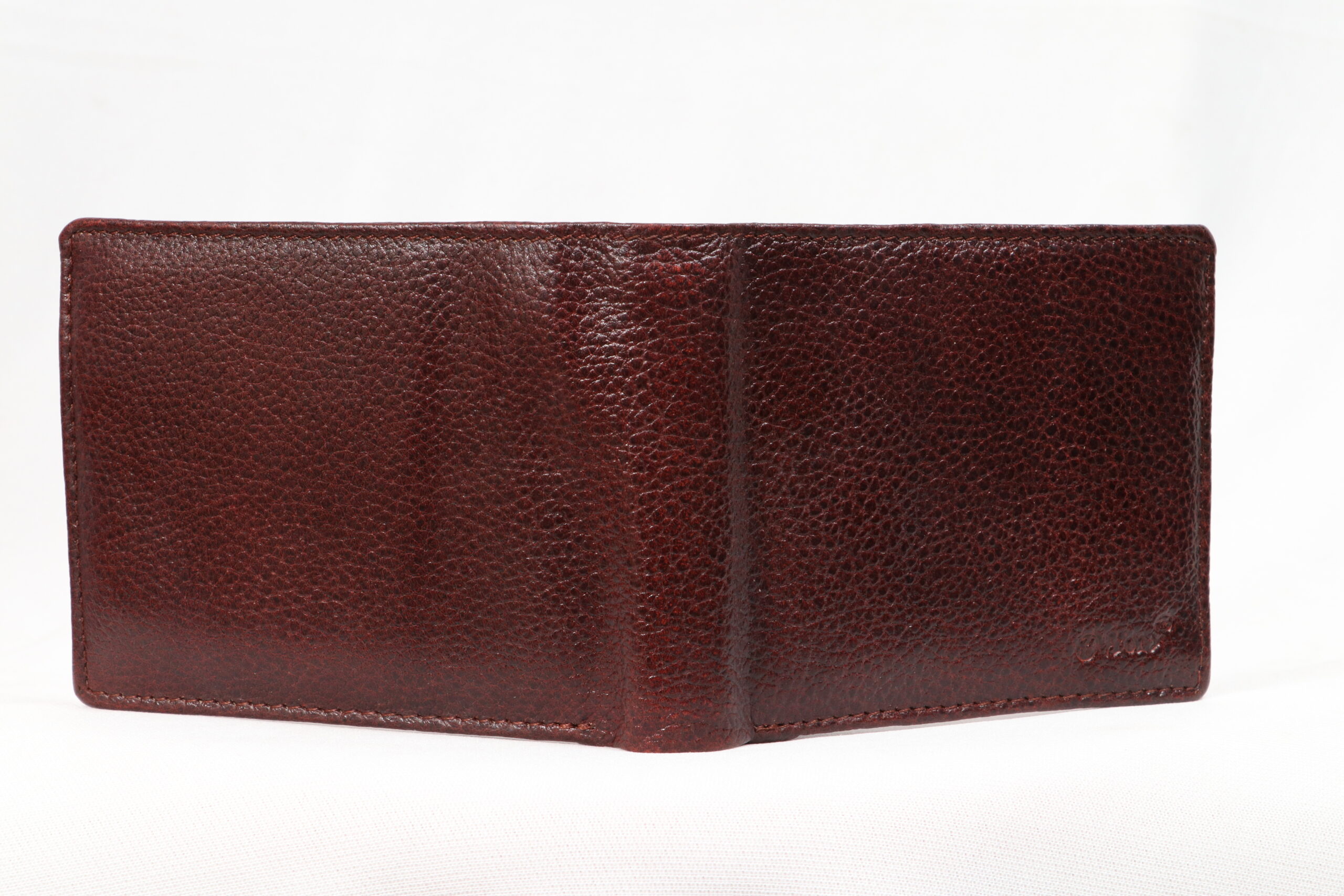 this rich brown wallet showcases a textured leather finish for a refined and distinctive look. Designed with a compact bi-fold structure, it offers practical storage for cards and cash while maintaining a slim profile. The deep tone and classic design make it a stylish and durable everyday essential.